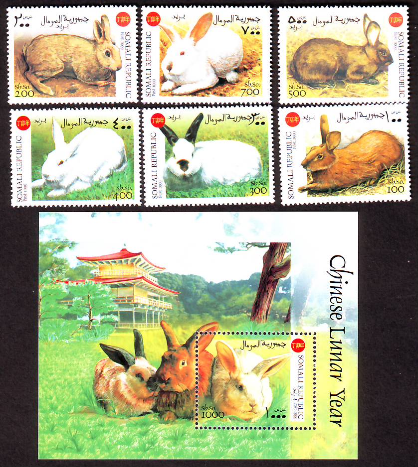 Somalia / Puntland  1999  6 W. + 1 Bl.  **  Wildhasen