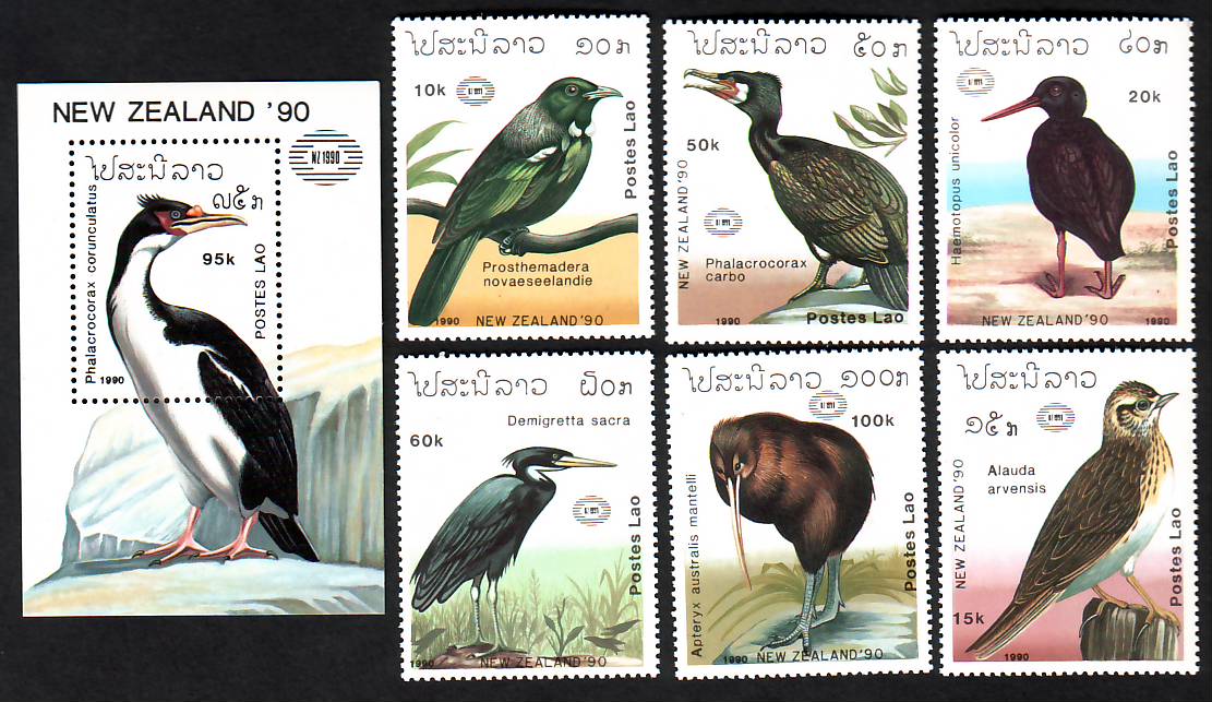 Laos 1990 6 W. + 1 Bl. ** Vögel