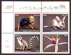 UNO - Genf 2021 4 Werte ** ZD Gefährdete Tierarten
